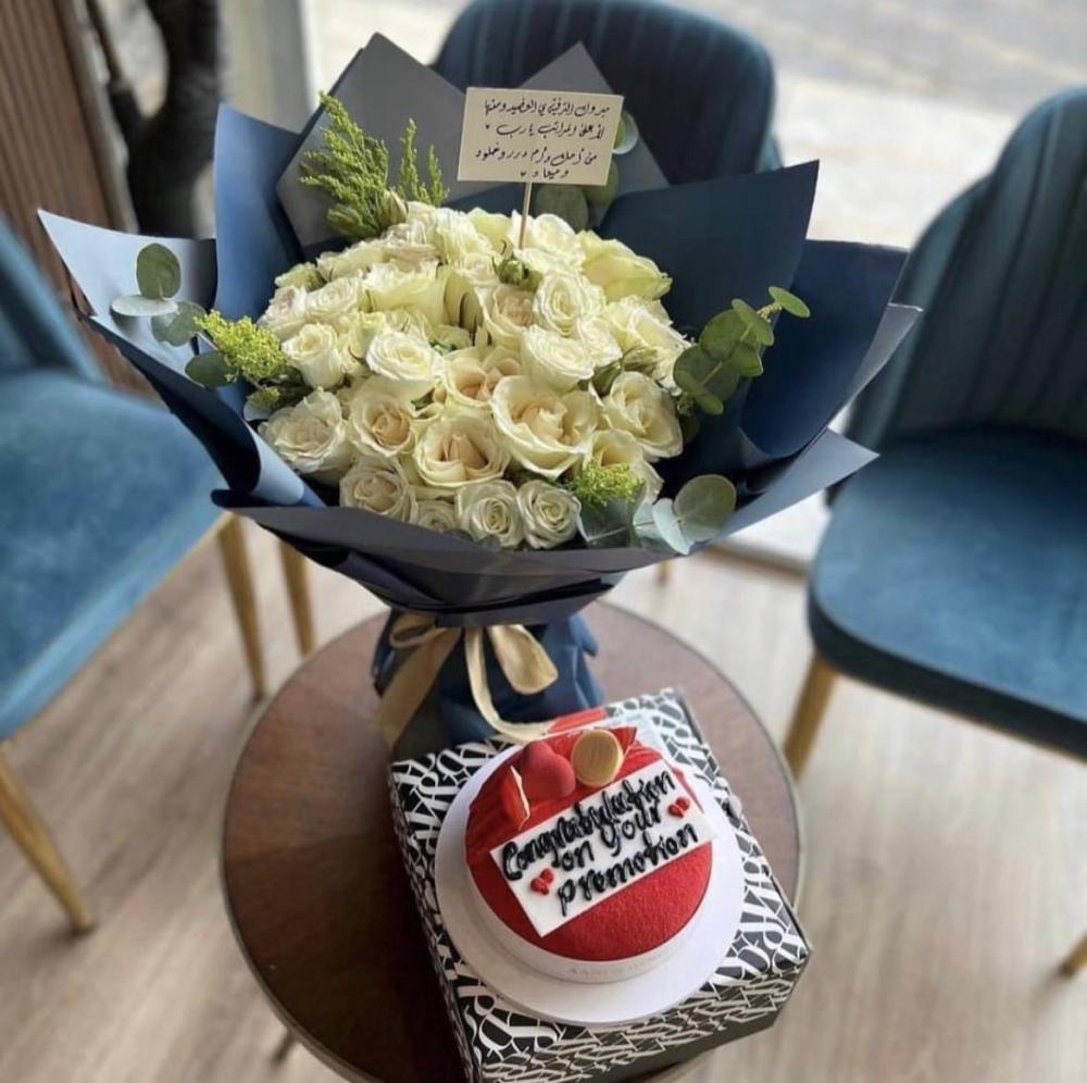 باقة ورد مع كيكة اني وداني :
